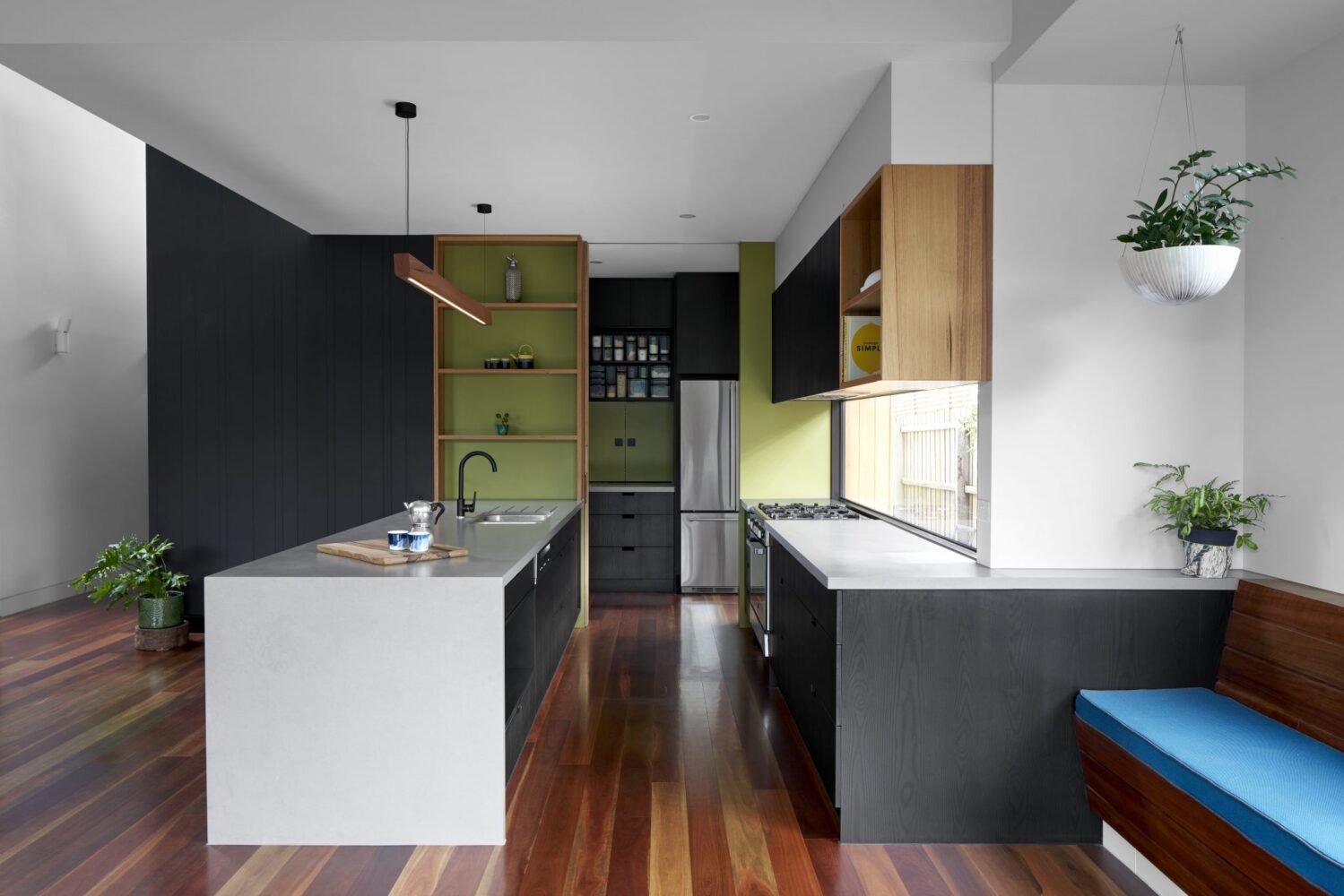 With obtuse windows, all electronically operated, heating flowing though the thermal skirting and spotted GVM floors, all it needed was a touch of colour, some green to bring in outside, some yellow and aqua just for some fun… Suddenly, it was a home.